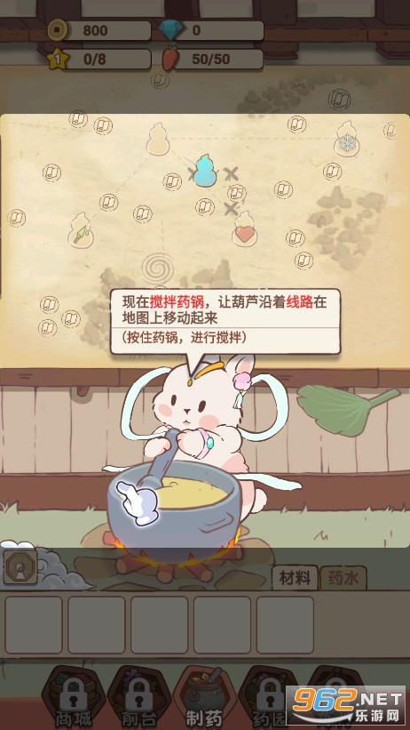 2.这是一款以捣药为题材的模拟经营手游,画风可爱,新颖的制药玩法,音乐优美,日夜转换机制;