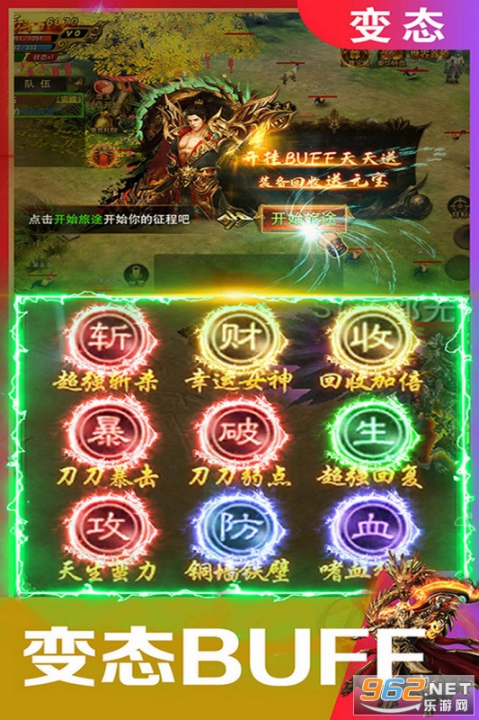 重温经典,探秘魔幻世界,经典职业战法道单职业,铁三角再现英雄合击! 带上兄弟打造最强帮会!专属套装霸气附体,酷炫拉风战力爆炸! 装备靠打,元宝靠捡,PK攻沙夺城,百人同屏副本,跨服荣耀服战,不服打到服! 不肝不氪,以战养战,时间换元宝,打多少拿多少,少年时未达成的梦,此刻还给自己!