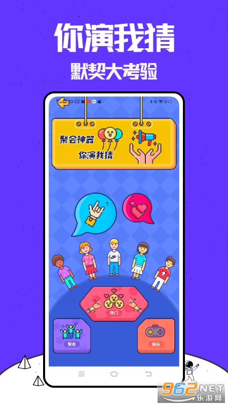 你来比划我猜是一款包括你划我猜互动性极强猜词app,包括你比我猜经典玩法外,还有各种聚会的小游戏,比如真心话大冒险,听曲猜歌等等,可以和朋友们在欢乐的时光渡过,考验朋友之间的默契哦。在有时光限度的情况下,一人举着手机,让对方看到词语,而后经过对方的描述和动作来预测该词。