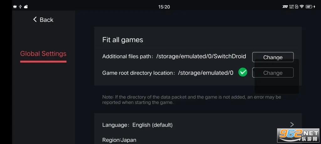 游戏根目录位置:根目录-选择SwitchDroid文件-勾选game文件夹,确定;