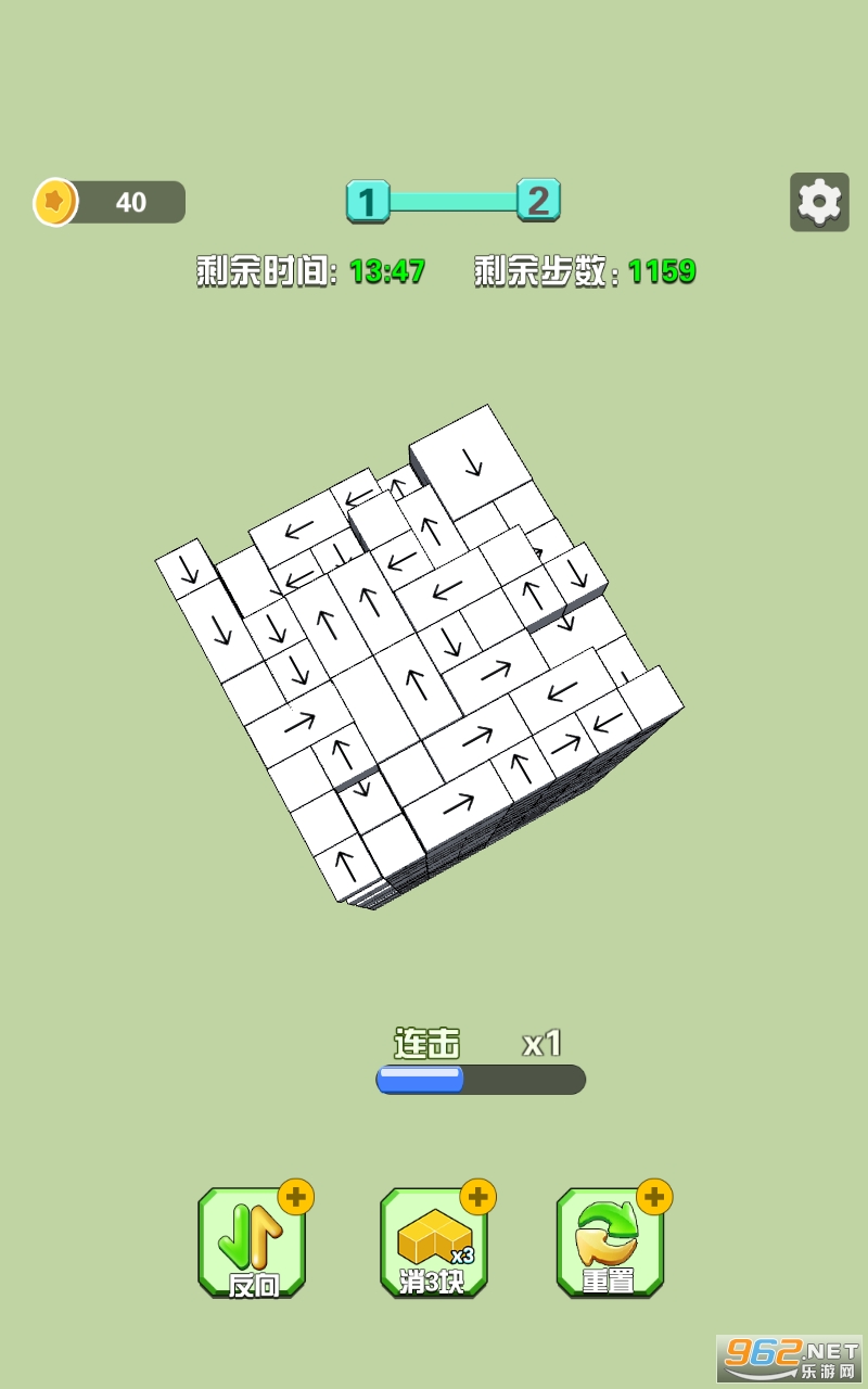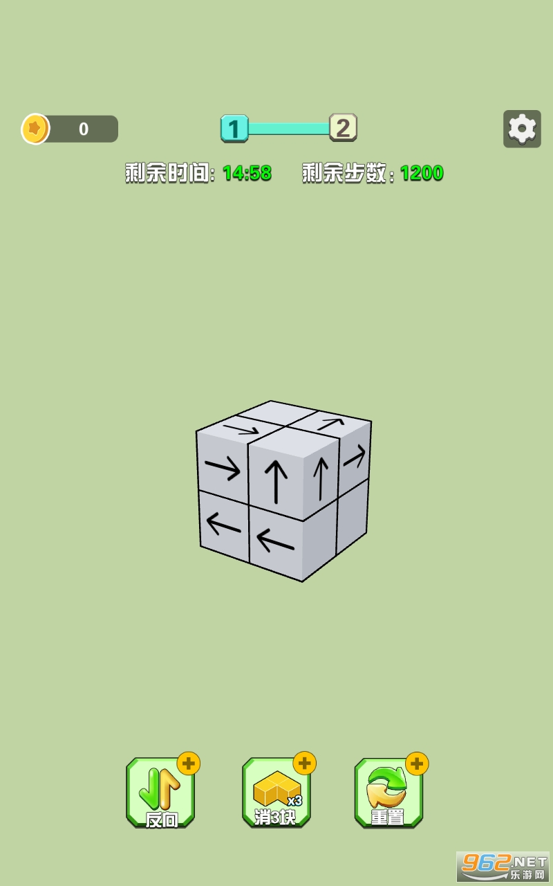 1、玩家需要在游戏画面中看到四个方向箭头,并尝试通过点击箭头消除相同方向的箭头;