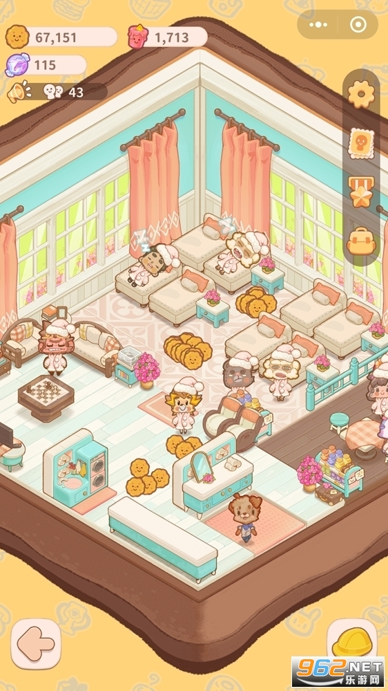 画风可爱,后面的家具敲好看,要先解锁前面的提升人气值逐步解锁,花费的小饼干(钱)也越来越贵!(就不能选自己喜欢的解锁吗,本来家具就很费钱)收益却有点跟不上啊,可看广告增加收益(但给的...在我看来就像是蚊子腿)。佛系玩了,想起来就上去点点点。