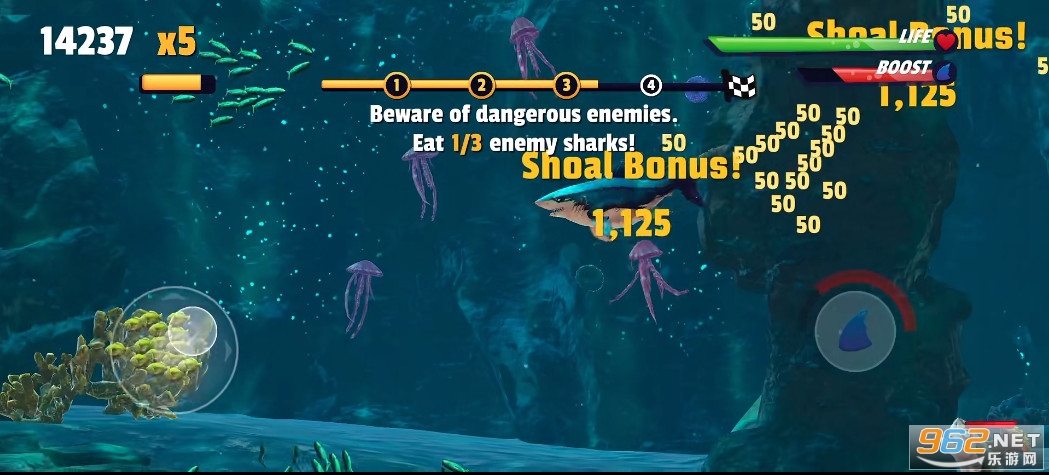 探索史前世界当您游泳、跳跃和踩踏穿过未知水域成为顶级捕食者时。让自己沉浸在一个前所未有的世界中,体验终极的鲨鱼冒险。