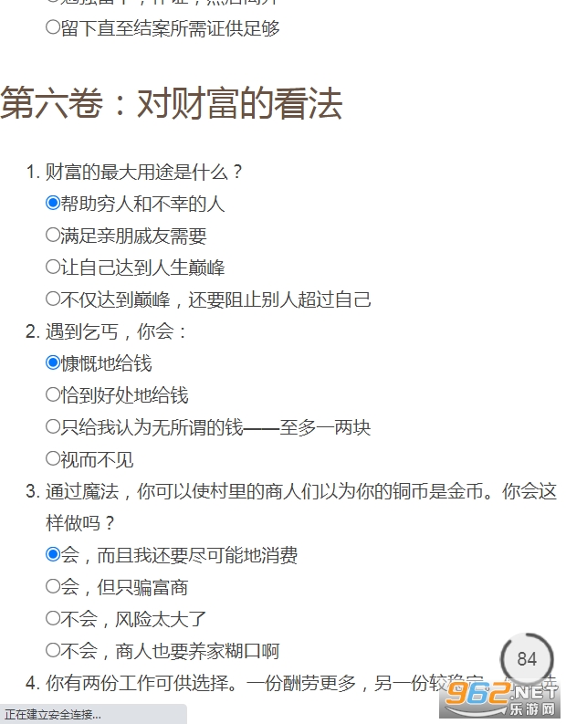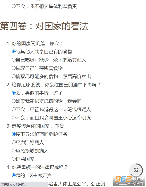 非常热门的一个测试题游戏,根据DND《龙与地下城》游戏规则将人类划分成九大阵营,玩家只需要回答一些简单的问题,就可以测试出你属于这些阵营中的哪个阵营,感兴趣的话就来测试看看!