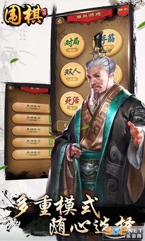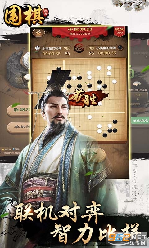 《元游围棋》一款有趣的传统围棋对战平台游戏,在这里你可以学习围棋,然后在这里进行对弈,游戏有着古风的画面,提供了丰富的玩法,你可以单机进行联机,还可以进行匹配,挑战天梯,赶快下载体验吧!