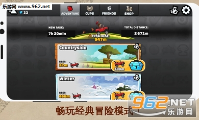 老司机比尔归来,全新排行榜、重装坦克、高智能方程式赛车重磅上线,再掀夏季杯赛热潮。全新关卡邀你任性翻滚,赛车之余,玩家还可登上神秘矿山、深冬极地等全新赛道尽情玩耍。游戏在保留原有玩法的同时,带来任性好礼及丰富的冒险任务,比尔大叔即将面临最新挑战。赶快加入全球5亿老司机推荐的2D休闲赛车手游《登山赛车2》,任性开跑,抢占赛道最先锋!
