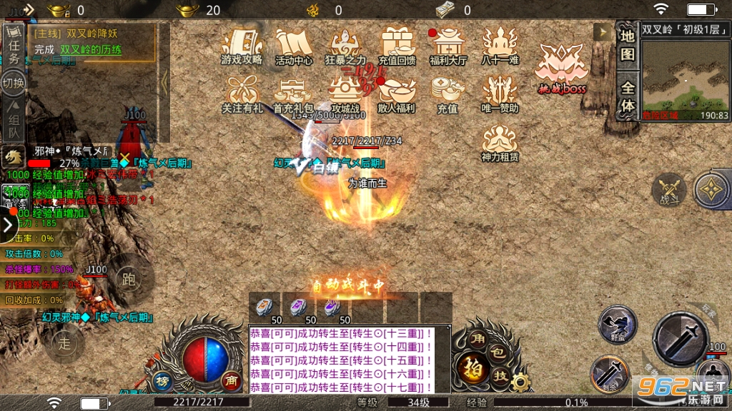 11、新增九、十层元神秘境,元神修为达到一定等级可进入(开服150天后开启)