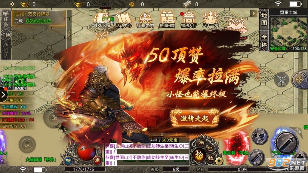 2、加入公会,开启攻城模式,打造神器,召唤兄弟,人手一把,跨服征战!