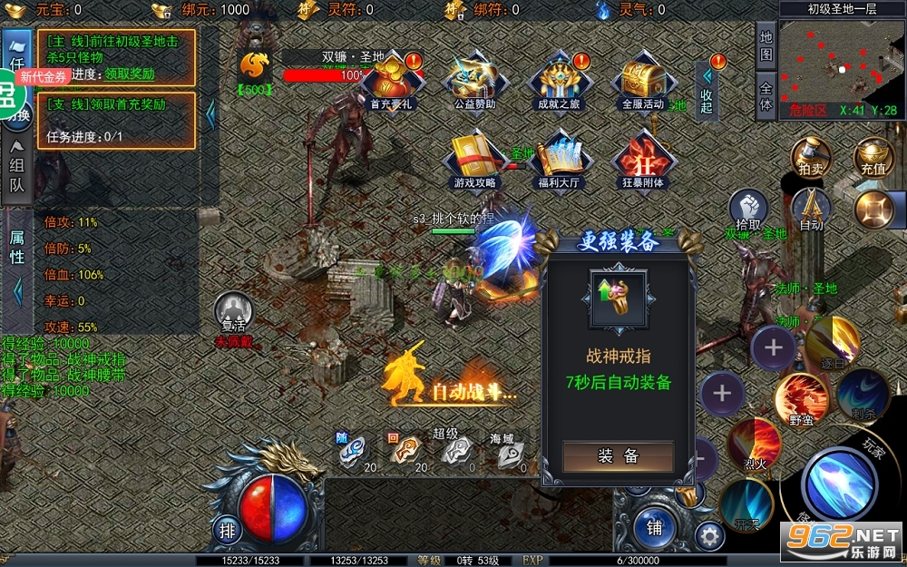经典战斗沙城燃烧的岁月,全服打宝概率提升100%,散人也可轻松爆极品,海量神器等你探索!装备不用了还能兑换,海量元宝秒到账,绝对良心!