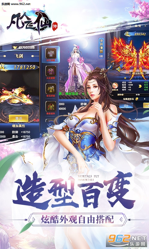 《凡人飞仙传》是首款跨服空战仙侠H5游戏,创新无限制浮空玩法、御剑飞行,纵横三界。数百种仙法魔功、千人同屏,华丽特效呈现爆燃仙界大战。更有华丽时装、法宝灵兽等百变玩法,带你畅游最精彩的仙侠世界。