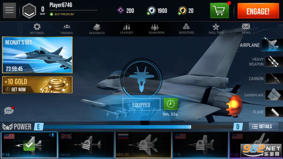 战斗等级:从菜鸟到空军上将。从战略角度考虑,在飞机上装备最好的射手武器:战术原子导弹、蜂群导弹、制导火箭等等