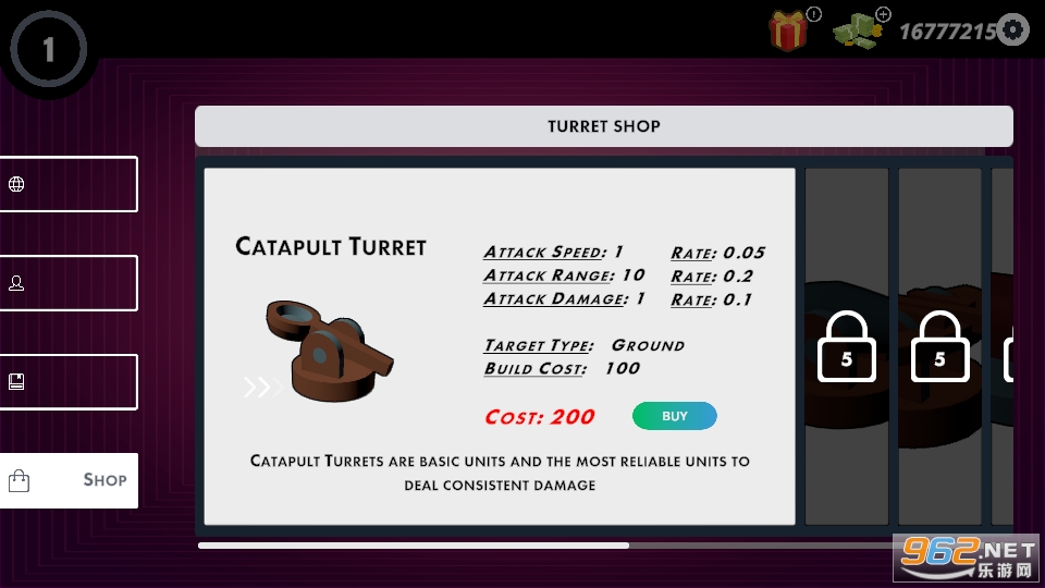 一站式购买不同种类的炮塔,每种炮塔都有自己的特殊能力。比较统计数据并优先购买哪些炮塔。