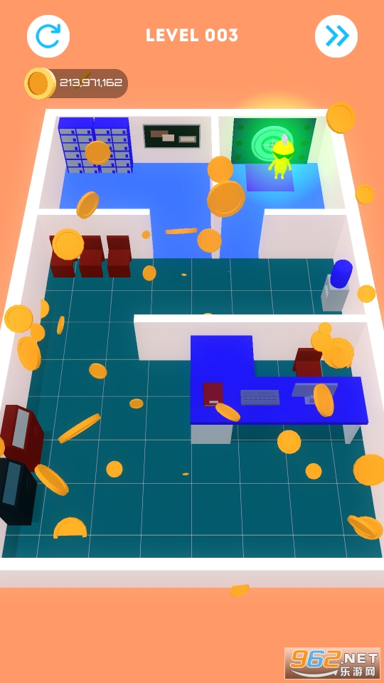 1、探索无尽的迷宫,收集更多的硬币,灵活的去躲避所有的障碍物和陷阱;