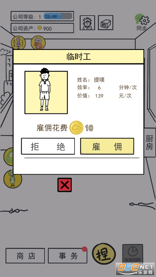 一款非常有趣的休闲模拟经营游戏,游戏中你将经营自己的公司,招募更多的员工,提升员工的数字,游戏的操作简单容易上手,购买更多的设备来让公司更加好的运营下去,推荐给喜欢休闲游戏的玩家。