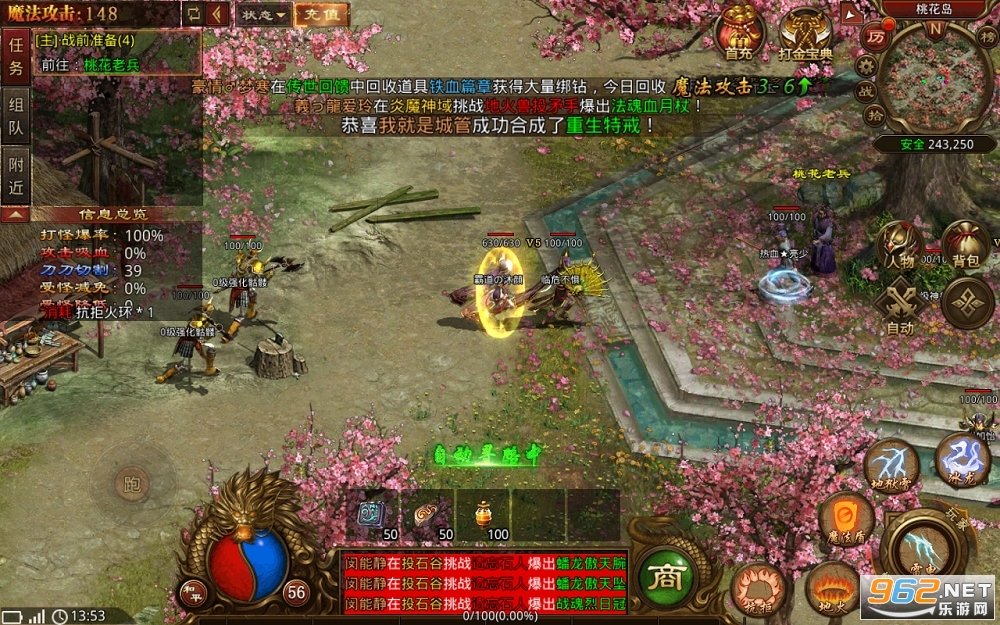 游戏有独家副本,可以获得百倍的历练,技能更加容易达到会心水平;