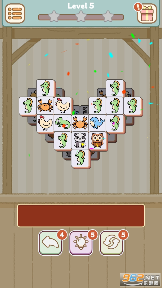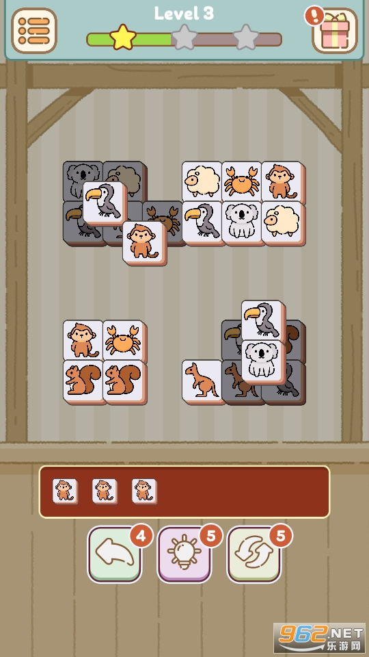 上手很简单的一款益智休闲游戏,玩家在游戏中只需要点击相同的小动物色块完成三消就可以了,丰富的关卡,非常适合各个年龄向的玩家用来打发时间。