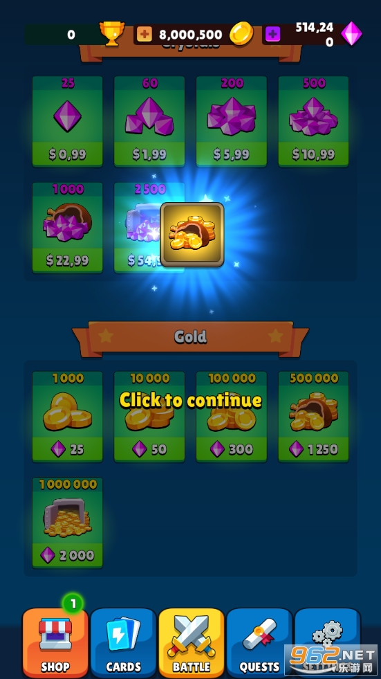 强制使用钻石购买价值500000的金币购买后获得大量货币