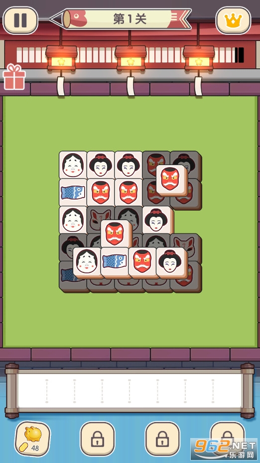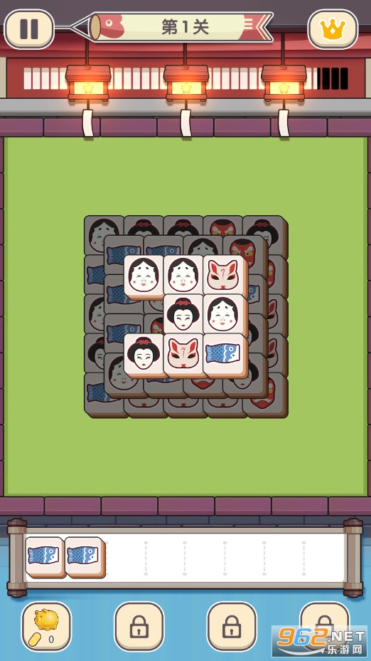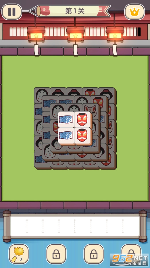 点击榻榻米上的方块元素,并将3个相同的元素放置到卷轴上即可消除。消除完该区域内所有方块即可获胜!如果卷轴上有7个以上的方块,游戏将结束。