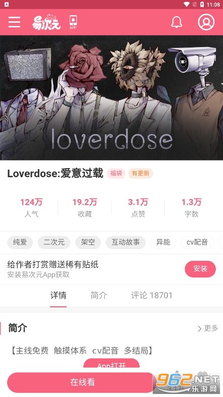 《爱意过载》又名《Loverdose》,是最近比较热门的一款沉浸式剧情模拟游戏,采用了精美的画风设计,里面拥有丰富的玩法和内容,精彩的剧情发展,众多的剧情走向,让玩家自由选择,在这里和其他的角色互动,推动故事的发展,在这里解谜,战斗,社交互动,完成各种任务,解锁不同的结局!