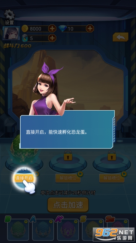 游戏开局玩家会获得一颗恐龙蛋,这颗恐龙蛋可以随机孵化出各种各样的恐龙,玩家获得自己的专属恐龙之后可以对它进行升级和培养,从而获得更强的战斗力,从最弱的擒龙到最强的霸王龙,你都有机会获取。