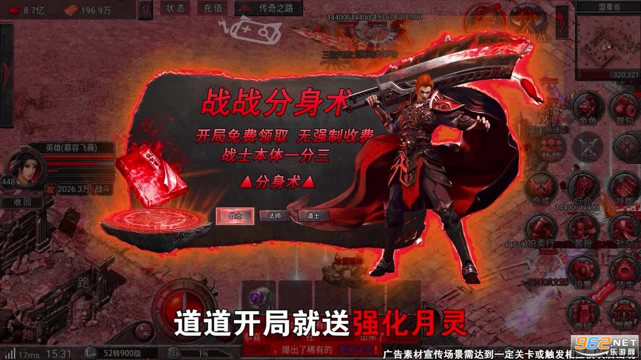 非常真实的3D画面,战、法、道三个职业自由选择,后期还能自由转职