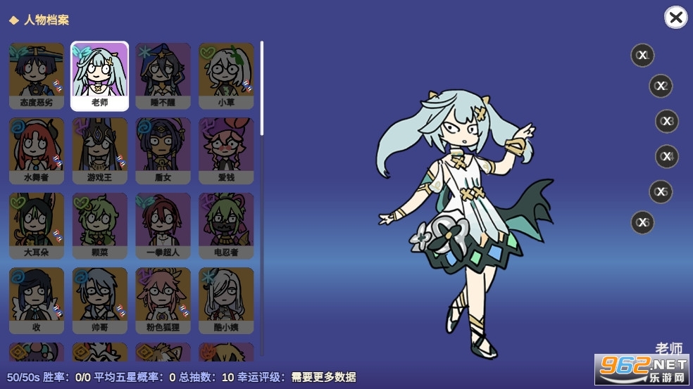 恶搞向的模拟抽卡休闲游戏,玩家在游戏中自己进行点击抽卡,技能种类多样,模拟进行抽卡,加入了很多人物角色,快来下载吧!