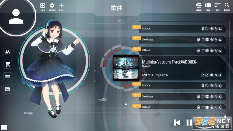 狂热旋律整体的游戏主界面偏向动漫风格,玩家可以在游戏的音乐主题界面选择自己想要开始的音乐游戏曲目。