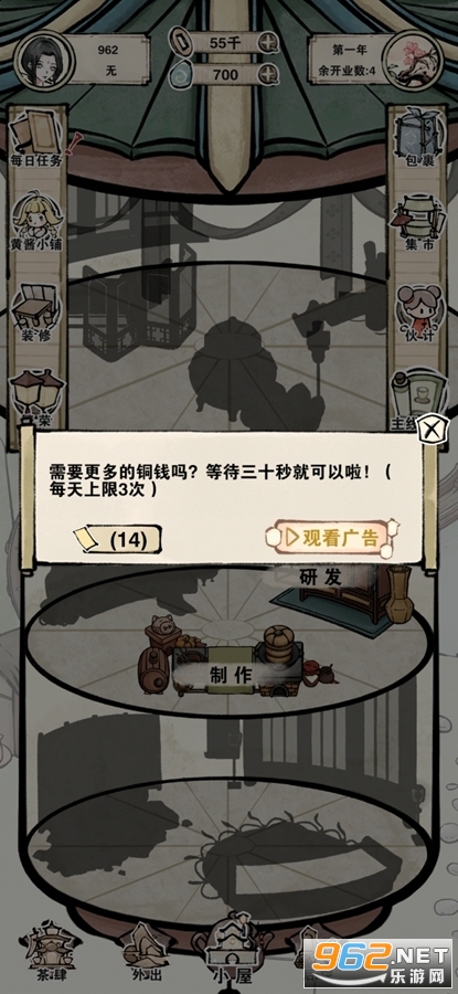 免广告获得奖励,取消铜钱、灵石、金票广告次数和等待时间,黄酱小店购买次数不减少