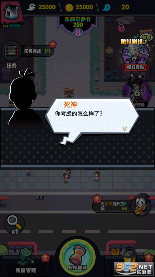 《鬼屋计划》是一款有趣的卡通风格休闲经营游戏,在这款游戏中你将和死神达成约定,经营一家鬼屋来收集能量,游戏的操作简单容易上手,使用真正的鬼魂来作为员工,游戏的玩法欢乐有趣,现在就来下载试试吧!