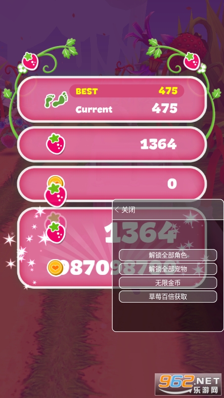 《草莓女孩跑酷破解版所有角色最新》是一款可爱跑酷闯关游戏。采用了清新的画风设计,精美的游戏场景,简单的玩法操作,玩家可以解锁不同的草莓公主角色,各种各样的宠物,在游戏中奔跑,躲避障碍,收集草莓和金币,解锁图鉴,烹饪美食蛋糕!
