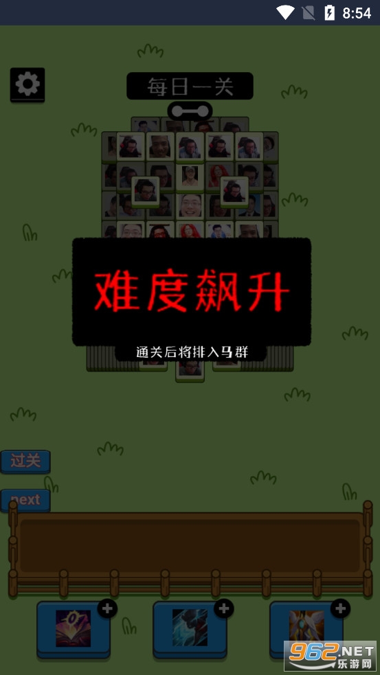 趣味的闯关游戏,难度非常的大,加入了大司马的各种头像,玩家需要寻找出3张相同的头像去进行消除,大司马的粉丝朋友们可以下载试试。