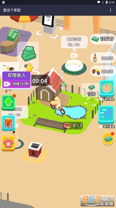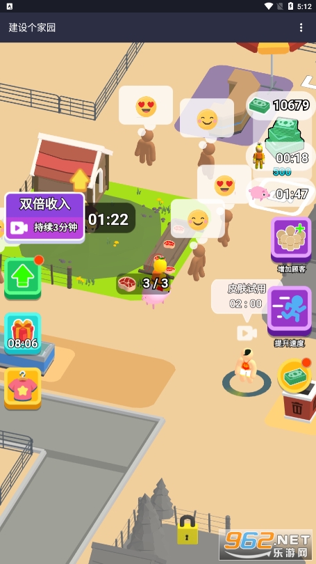 2、轻松的建造玩法,你要扩建更多的土地,可以赚取更多的金钱。