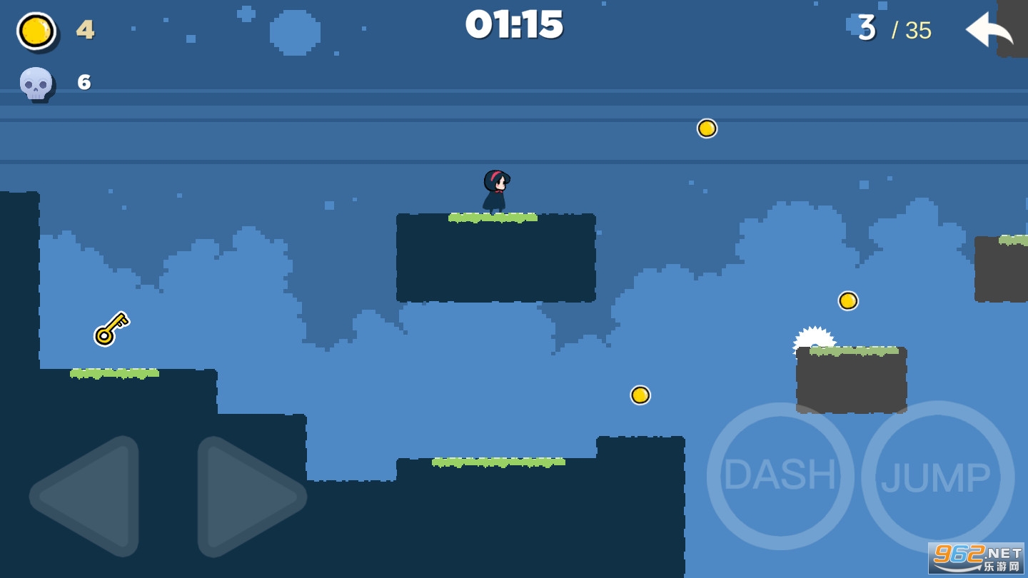 一款轻松有趣的横版跳跃闯关游戏,进入游戏以后看到死亡次数的记录就知道这个游戏一定不简单,游戏前面的关卡还是比较轻松的,你需要熟练的掌握跳跃冲刺的节奏,推荐给喜欢平台跳跃游戏的玩家。
