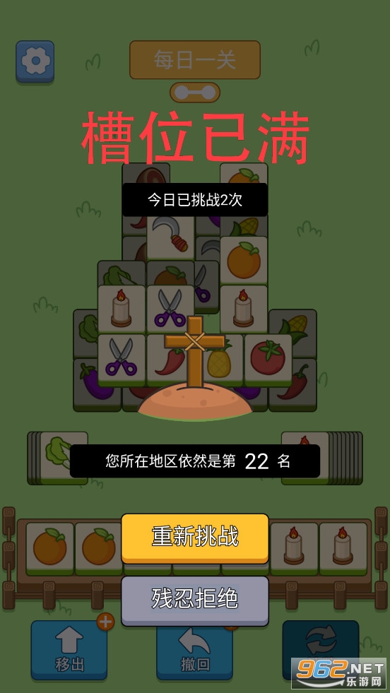3.全部方块都消除完毕,即可顺利通关,一旦七个卡槽满了意味着挑战失败。