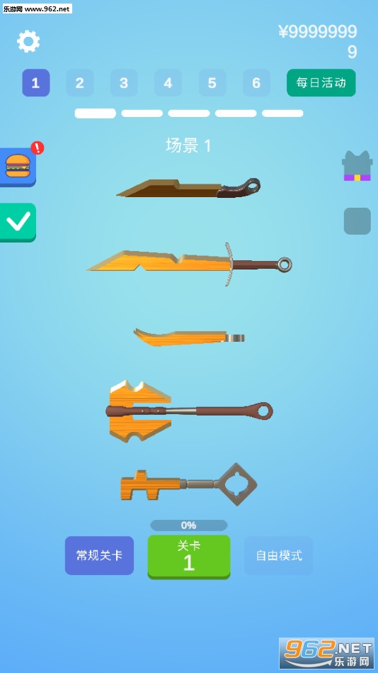 2、随着关卡的解锁,越来越复杂的刀剑模型将为你解锁,给你带来奇趣多多的闯关过程;