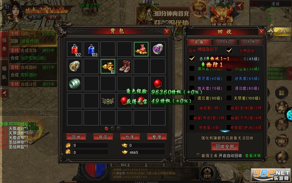 货币只有金币,赤月套装就是终极,开区第三天开放封魔谷,第五天开放苍月岛,第七天开放白日门,第十天开放六大重装,第十五天开启沙城战在2003年热血1.76的基础上,我们降低了升级难度,提高了装备爆率,官方承诺不出售任何物品,所有装备全靠打!