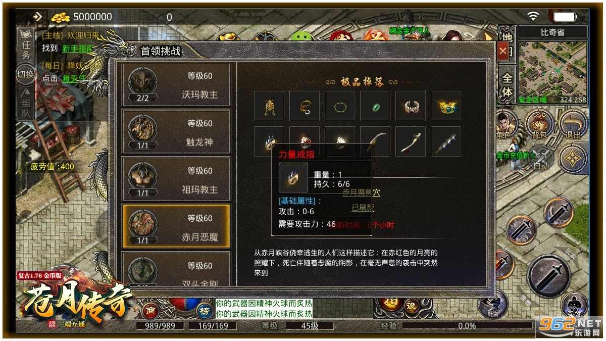 完美复刻2003年的1.76金币版本,货币只有金币,赤月套装就是终极,开区第三天开放封魔谷,第五天开放苍月岛,第七天开放白日门,第十天开放六大重装,第十五天开启沙城战在2003年热血1.76的基础上,我们降低了升级难度,提高了装备爆率,官方承诺不出售任何物品,所有装备全靠打!
