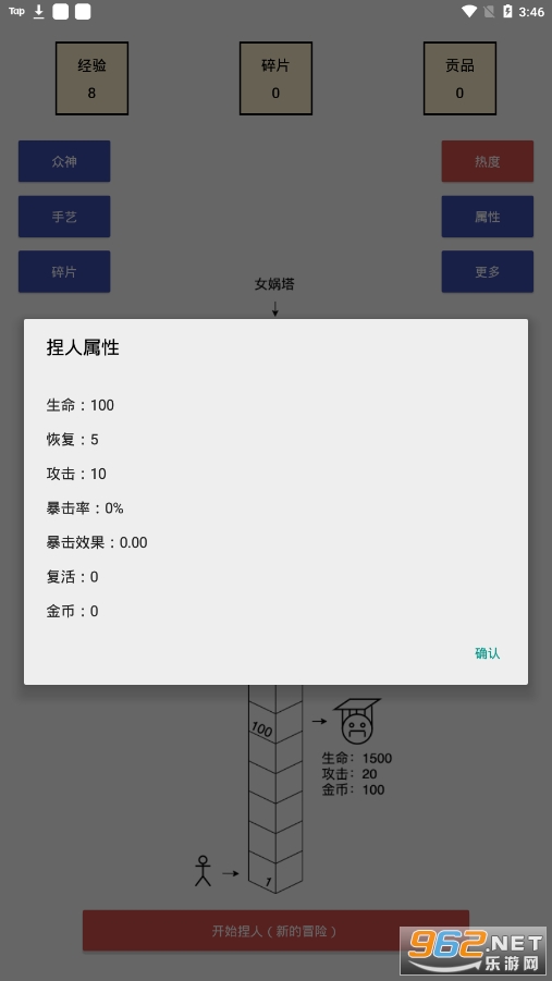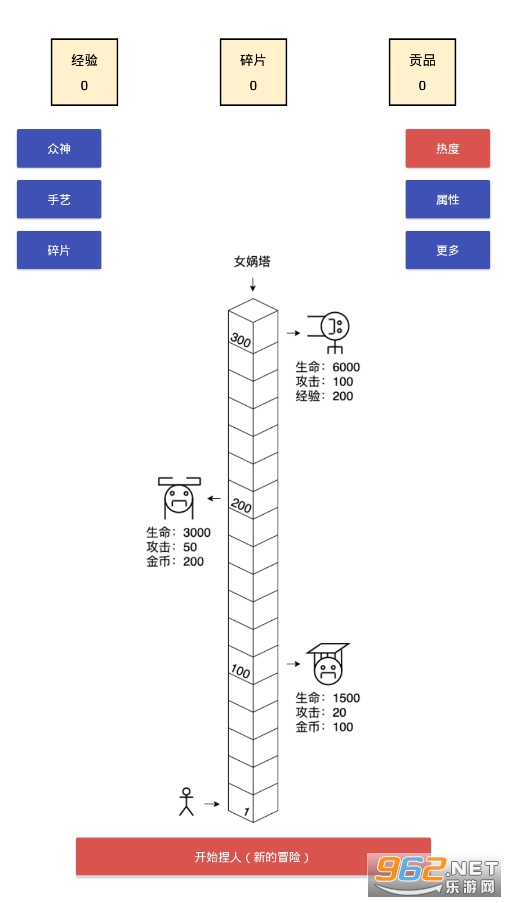女娲捏人是一款轻度roguelike游戏。互动众神,提升手艺,解锁碎片,收获祝福。快使用捏出的人,通过女娲塔吧!