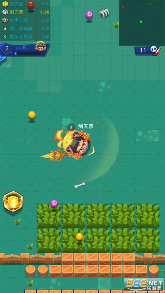 一款轻松有趣的俯瞰视角io游戏,游戏中有着各种道具和草丛地形可以利用,你需要灵活的移动来躲避攻击,同时击败更多的敌人,游戏的操作简单容易上手,推荐给喜欢io乱斗游戏的玩家。