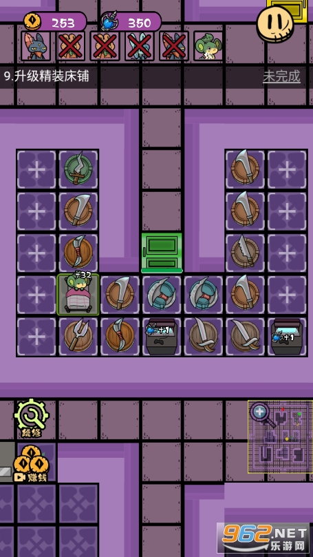 可以放置其他的游戏道具,拥有金币之后可以放置箱子,生产闪电道具,可以在后期升级床