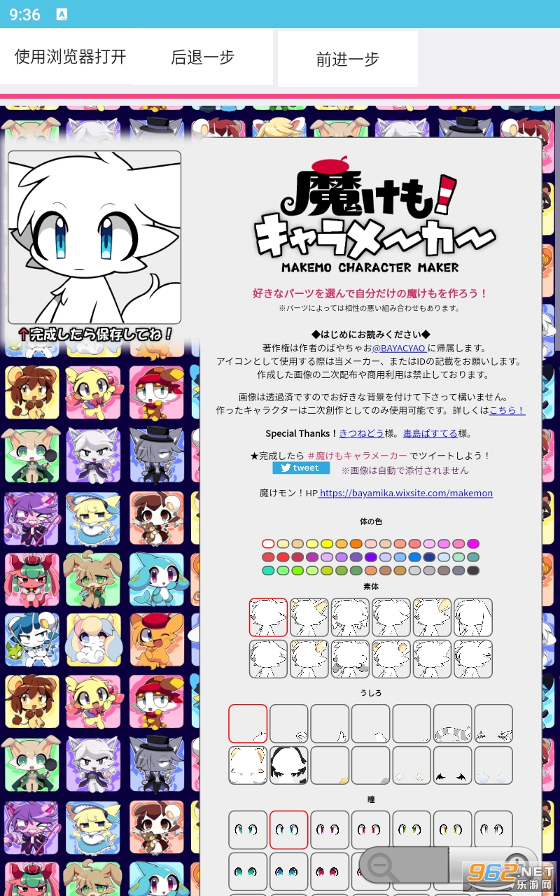 《网页兽设生成器app》是一款非常不错的头像制作软件,本身是一个可以自由的设定形象的网站,网友制作成了软件app,打开直接就是网站,拥有着上百种丰富的图层可以自由的变换叠加来制作自己的兽设,十分的可爱哦,感兴趣的亲们赶紧下载吧。