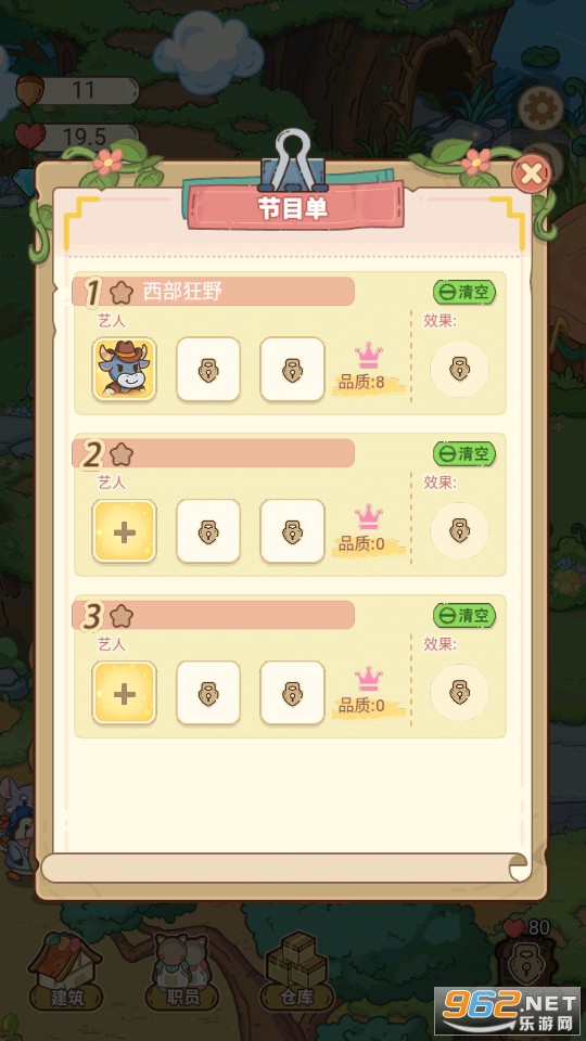 非常有趣的模拟经营游戏,在森林中经营好你的乐园,不断的签约艺人,给小动物们提供一个放松的地方。玩法非常有趣,还有很多精彩的互动剧情,快来下载吧!
