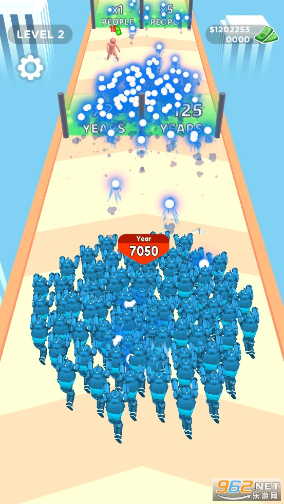 《人群进化破解版》是一款画面清新的采用竖版玩法的射击闯关手游,游戏中玩家将控制橡皮人去冒险,道路上会出现各种不同的门,选择合适的门通过来增加队伍的人数和攻击力,可以升级技能提高人物的属性,游戏已修改,大量钞票可以免费使用。