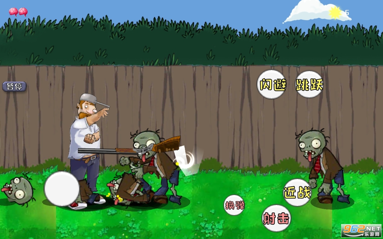 2、操作戴夫施展不同的战斗方式来消灭更多的僵尸;