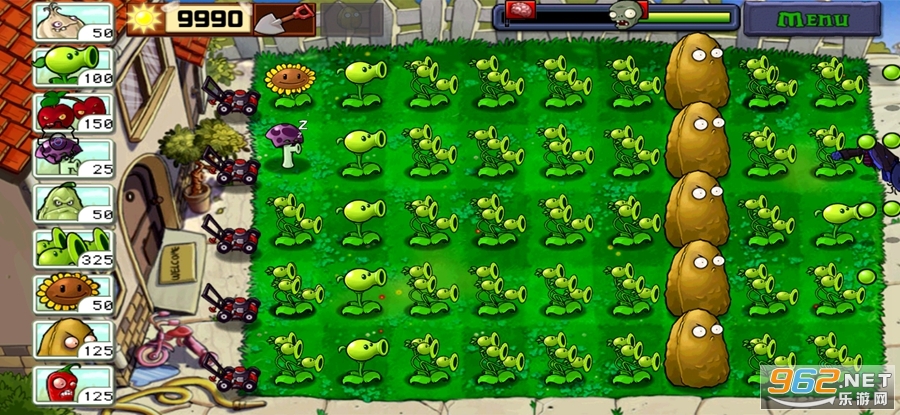 玩家防御僵尸的方式就是栽种植物。49种植物每种都有不同的功能,例如樱桃炸弹可以和周围一定范围内的所有僵尸同归于尽,而食人花可以吃掉最靠近自己的一只僵尸。