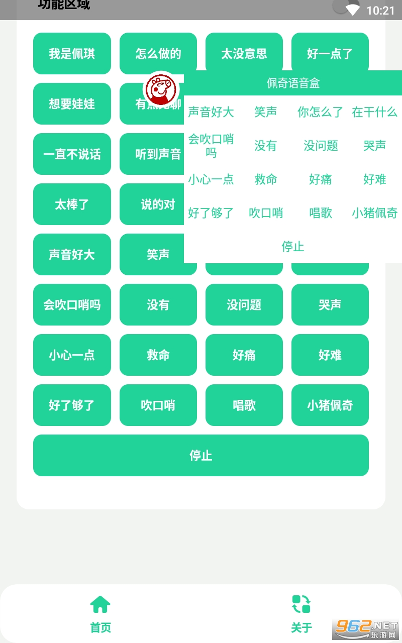 总体来说是一款非常不错的小猪佩奇的语音盒子软件,软件中的按钮十分的丰富,有着内置菜单的功能,开启可以直接悬浮,喜欢的亲们赶紧下载吧。