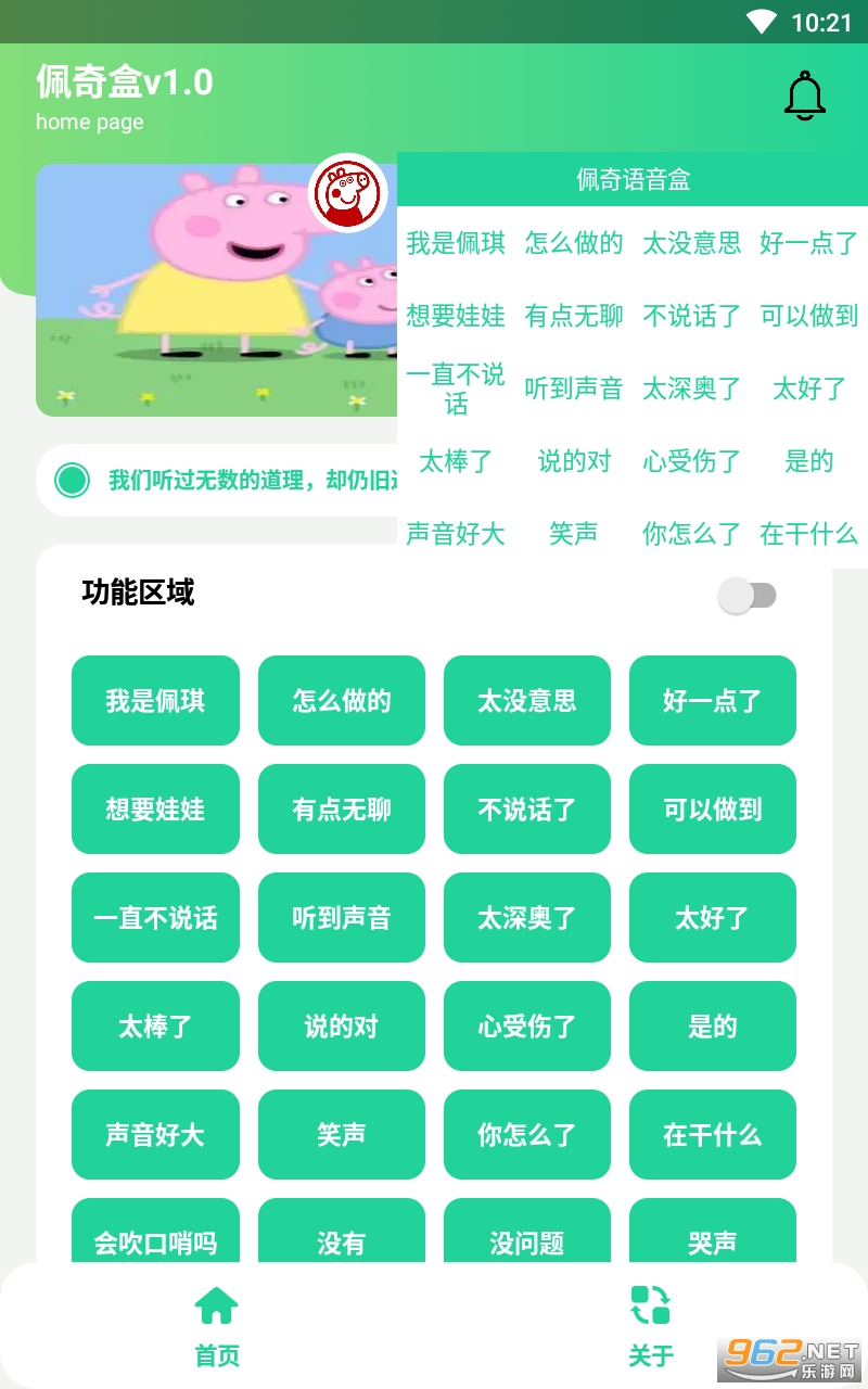 3、经典小猪佩奇语音包,点击即可播放,支持悬浮框设置。