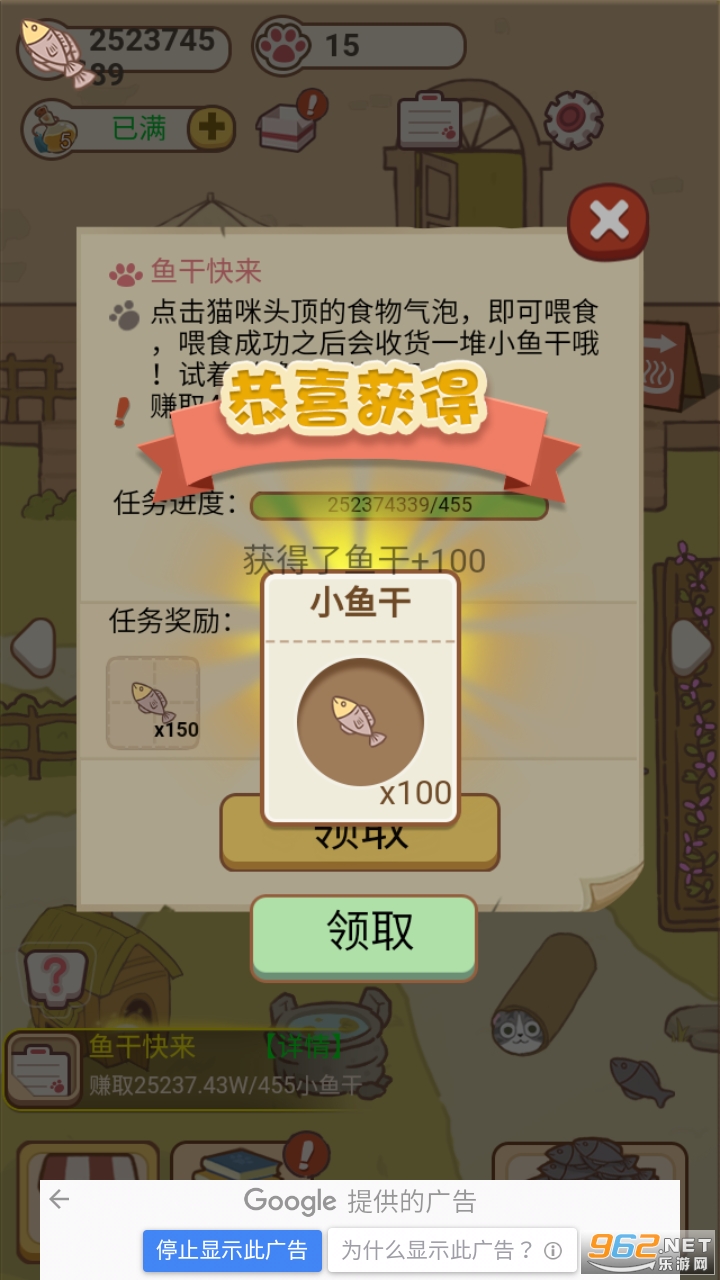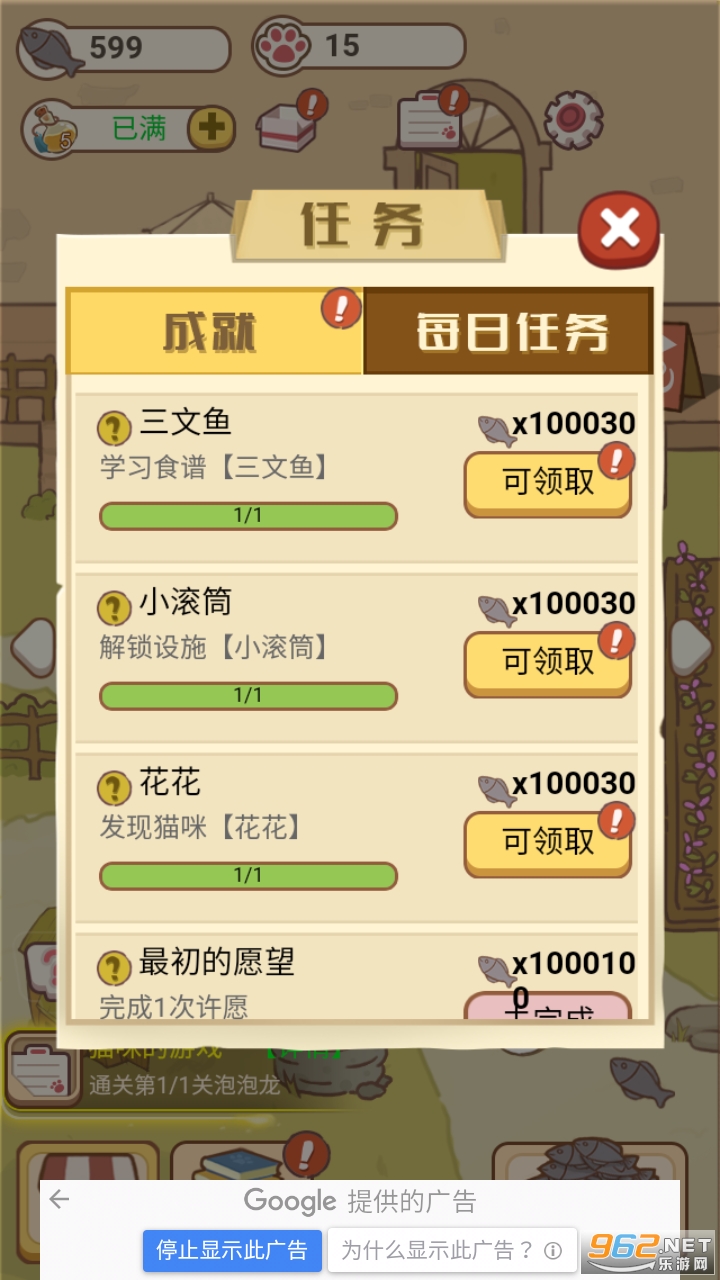 领取成就奖励可获得大量鱼干(在设置按钮旁边)