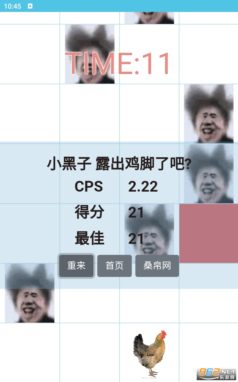 吃掉坤坤游戏是一款恶搞的音乐小游戏,根据节奏去点击坤坤的头像,坤坤就会变成公鸡的样子,点击的越准你的分数越高,节奏也在不断的发生变化,就看你如何去把握了,看起来就很魔性,带给大家一些欢乐,估计坤坤的粉丝看了会流泪,但是仅供娱乐大家不要当真。
