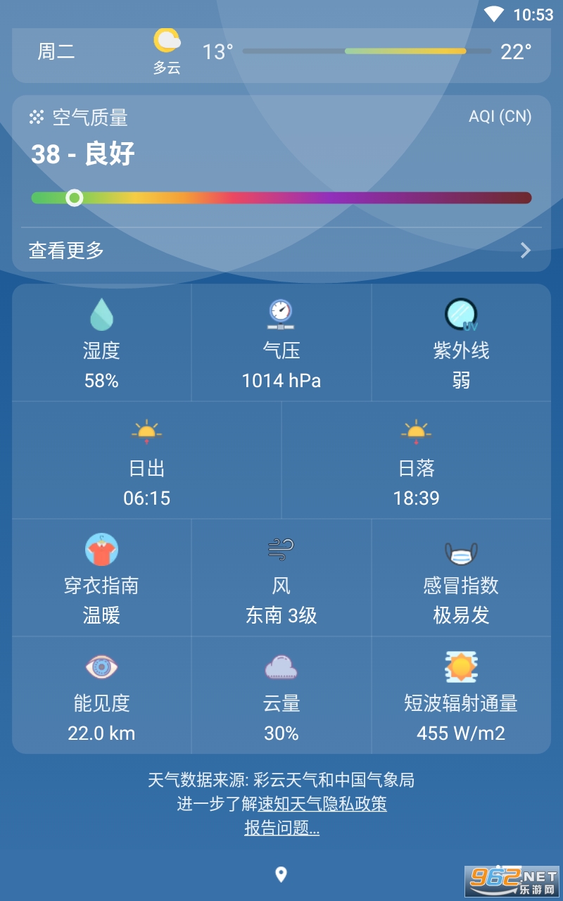 4.生活指数:提供穿衣、洗车、紫外线、感冒、运动、旅游等生活指数。